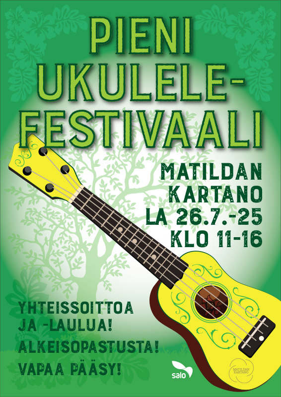 PUF tulee taas! Salon Mathildedalissa jo toisen kerran järjestettävä festivaali tuo mukanaan ikivihreitä sävelmiä ja leppoisaa tunnelmaa. Päivän mittaan voit omalla ukulelella osallistua yhteissoittoon tai kokeilla lainasoittimella, miten helposti ukulelen saa soimaan.